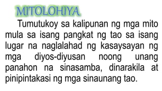 Nakatutulong din ito upang maikwento ang sinaunang gawaing panrelihiyon at maipaliwanag ang kasaysayan. -Ipinapaliwanag ang pagkakalikha ng daigdig. Maipaliwanag ang kasaysayan 6.
