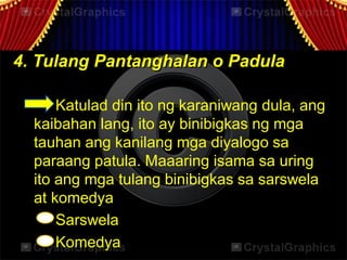 Sa pamamagitan ng dulanailalarawan ang buhay ng tao na maaaring malungkotmasayamapagbiro masalimuot at. May sarili nang panitikan ang ating mga ninuno sa panahong ito. Mga Uri ng Dula.