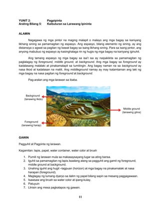 Hindi maaaring magkaroon ng karapatang-sipi sa anomang akda ang Pamahalaan ng Pilipinas. Araling panlipunan pansariling panganagilangan melc basedaraling panlipunan 5 pagguhit ng mga gamit ng sinaunang filipino pagpapatuloy at pagbabago grade one araling panlipunan ang mga pagbabago sa aking paglaki grade one araling panlipunan araling panlipunan 5. ARTS 5 - PAGGUHIT.