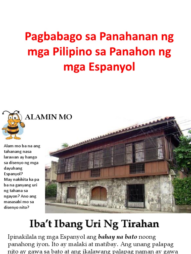 Ang panahanan ng mga sinaunang Pilipino ay gawa sa bato at tisa ang bubong ng bahay. Panahanan Ng Mga Pilipino Sa Kolonyalismong Espanyol Pdf. By Guest124 9 years 12 months ago 0 LIKES Like UnLike.